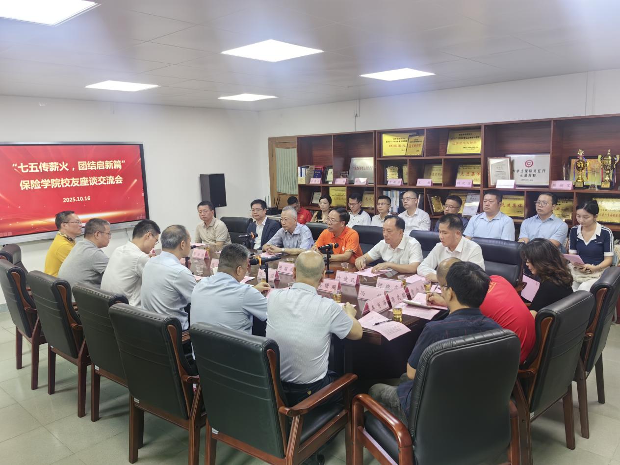 正值广东金融学院建校75周年之际,为凝聚校友力量、传承广金精神、共话行业发展,搭建校友与母校及师生沟通桥梁,在学校领导的关心指导下,保险学院于10月16日下午举行校友座谈交流会。出席此次会议的有保险学院党委刘新强书记、陈辉院长,黄燕宇副书记、张伟副院长,以及粟榆、方有恒、郭金发等老师生代表和二十余名受邀优秀校友嘉宾参加座谈交流会。本次交流会由刘新强书记主持。
